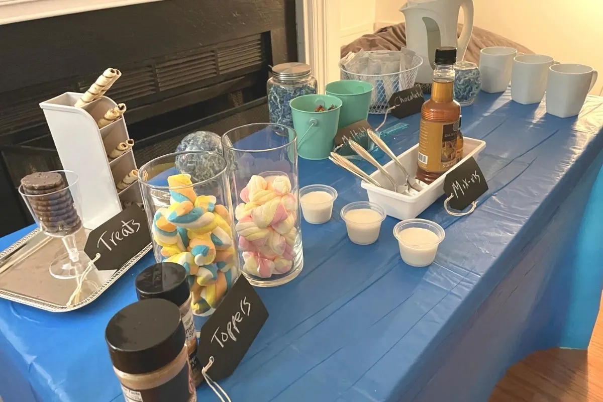 Psst: here's how to set up the Dollar Tree Hot Cocoa Bar in the photo.